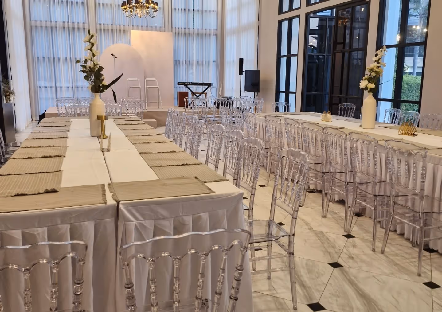 เช่นเดียวกับโต๊ะจีน เราให้ความสำคัญในการเลือกอาหารดีที่สุด สดใหม่และรสชาติถูกปากคุณสามารถเลือกรูปแบบอาหารสไตล์ไทยและจีนรวมถึงของหวานตามประเพณีในราคาที่หลากหลายอย่างที่ต้องการ