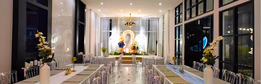 เราขอนำเสนอรูปแบบอาหารบุฟเฟต์ไตล์ไทยและยุโรป พร้อมการตกแต่งที่หรูหราและทันสมัยตามรูปแบบที่ต้องการ พร้อมด้วยบาร์เครื่องดื่มที่หลากหลาย เช่น ค็อกเทล หรือเบียร์สดแบรนด์ต่างๆ